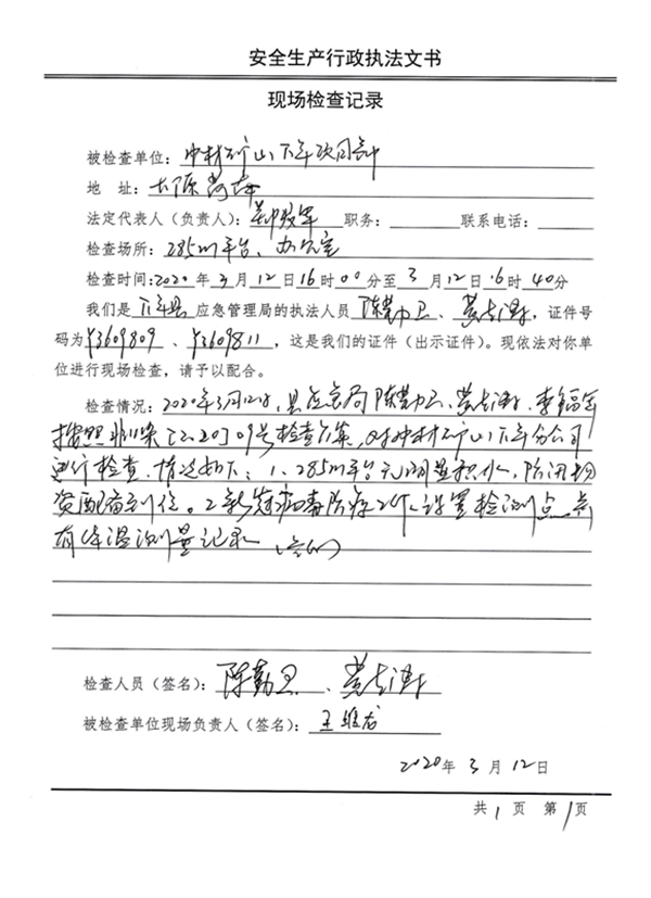 2020312午,根據(jù)萬年縣疫期防控需要,萬年縣應(yīng)急管理局領(lǐng)導(dǎo)中材礦山萬年分公司施工現(xiàn)場及辦公室進(jìn)行檢查,主要檢查了分公司疫情防控相關(guān)措施及汛期防護(hù)設(shè)施物資。