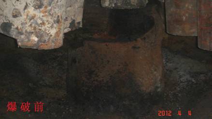 兗州中材建設(shè)有限公司云維項目部 實(shí)施石墨電極分解爆破 4月4日,應(yīng)云維乙炔化工有限公司(業(yè)主)要求,我項目部對其廠區(qū)1#電石爐內(nèi)石墨電極成功實(shí)施分解爆破。 本次爆破點(diǎn)位于業(yè)主電石車間二層電石爐內(nèi),技術(shù)人員和安全員經(jīng)現(xiàn)場勘查發(fā)現(xiàn):石墨電極為直徑1.2m、高約1.5m的圓柱狀石墨體,從中心呈輻射狀均勻分布12塊約1cm厚鋼板。三個電極呈“品”字狀分布在一個直徑約7~8米的幾乎密閉的鋼制反應(yīng)爐內(nèi)(有洞口)。爆前充分勘察了爆區(qū)周圍的實(shí)際情況,結(jié)合從網(wǎng)絡(luò)上搜集的對石墨電極的性能分析和以往的爆破經(jīng)驗,選用合適的爆破器材,擬定了幾種爆破方案。充分分析爆破方案的可行性后,選擇其中可行性較高的兩種方案進(jìn)行了試爆,結(jié)合兩次試爆效果,經(jīng)調(diào)整爆破參數(shù)后,最終成功拆除。 本次爆破對僅隔約10米遠(yuǎn)、正在生產(chǎn)的2#爐和庫房未產(chǎn)生任何影響。 這次爆破工作雖小,但我們本著謹(jǐn)慎、科學(xué)的態(tài)度對待。從爆破參數(shù)的選擇到安全警戒都認(rèn)真小心,取得了預(yù)想的效果。 通過這次爆破,積累了對巖石以外材料的爆破經(jīng)驗,也增加了我項目部尤其是年輕人工作技能。也到了業(yè)主的認(rèn)可。 孟永旺