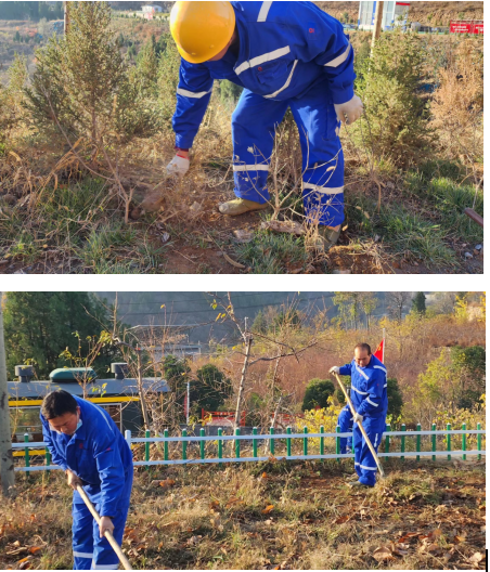 白坪分公司在3天內對所屬區域的雜草、垃圾等進行集中清理。大家用割草機、鐮刀、剪刀等清理綠化帶、草坪上的雜草,用塑料袋袋、編織袋撿拾運礦道路、生產區域、邊坡、路旁垃圾,對排水渠、洗車機等仔細清理;對項目部生活區荒地重新開墾復墾,全體人員熱情高漲,干勁十足,分工協作,配合默契,全然不顧天氣寒冷。